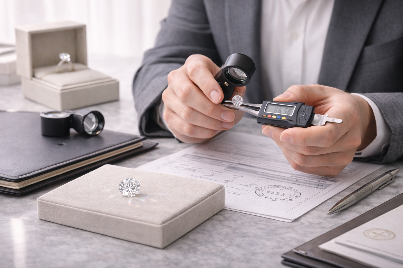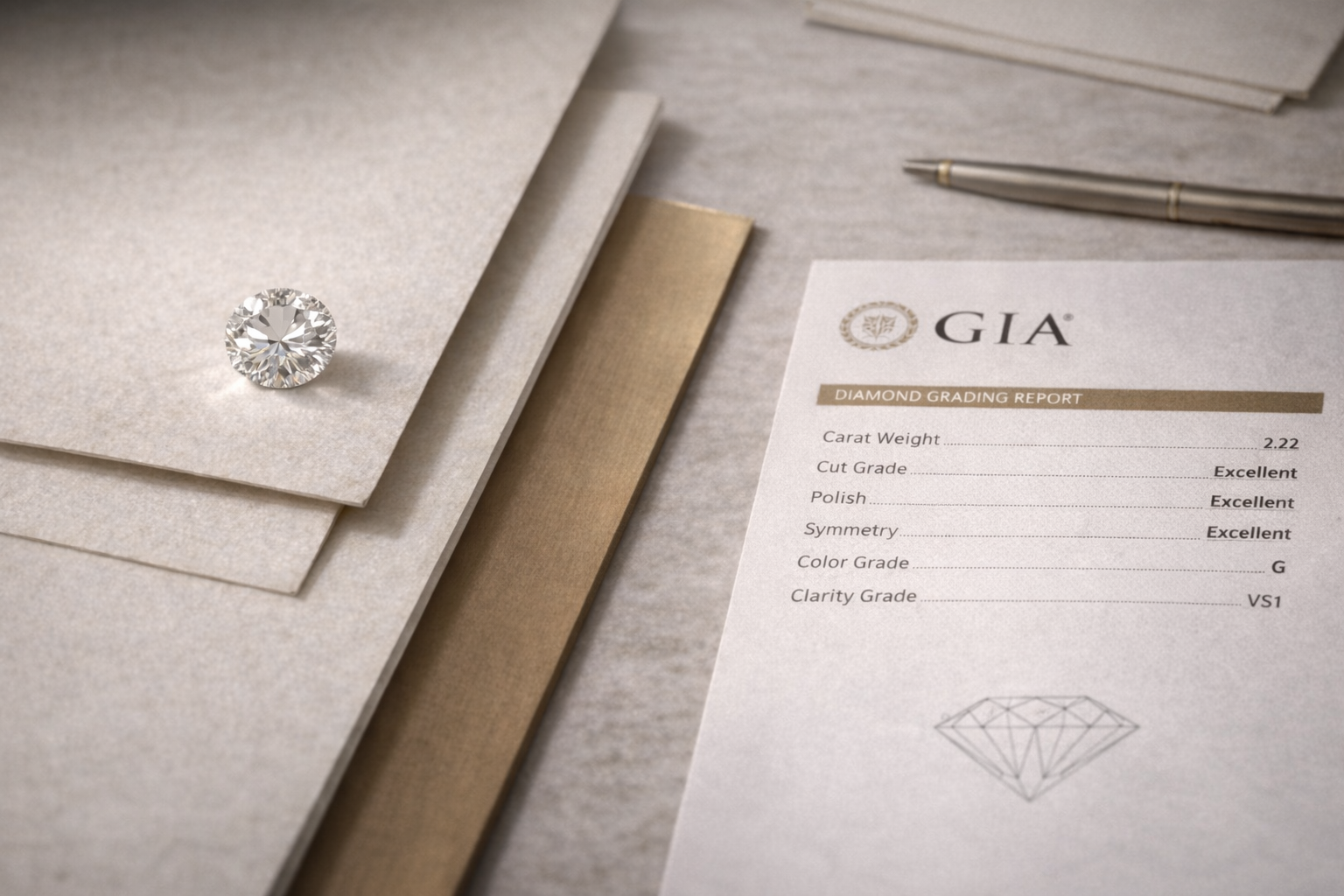 Certification tells you the grades assigned to a stone at the time of evaluation. Our sourcing process applies proportion analysis and performance review on top of that certification data — not in place of it. Every stone we source carries a verified report from one of these two laboratories.